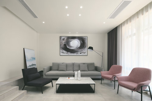 本案以淡雅色調(diào)為主,以爵士白大理石打造的白色,看似沒有具體的形象,但可以從整體上感受它與有形的圖像之間密不可分的關系,從而營造出濃濃的含蓄美感。使人在了解了設計所傳達的信息之外更能夠獲得情感上的共鳴,藝術上的陶冶。
