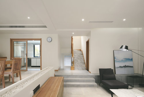細節(jié)之處,木質(zhì)物件以其最自然的紋理,給人無限親切感,不論是簡約風格的空間還是混搭空間,都能用木質(zhì)家具給空間增添飽滿感和溫馨厚重感。長方形的木質(zhì)餐桌,展示出濃郁的日式恬淡。木質(zhì)的餐桌系列與樓梯扶手、門框的木質(zhì)運用相互點綴,貼近自然。淡淡的木色,搭配純凈的白色,營造出溫馨的居家環(huán)境,同時帶來一種和諧、寧靜素雅的美。