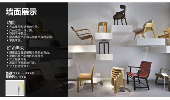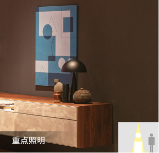 重點照明:通過聚集的燈光投射在特定的物品上,以有對比的燈光使得物品的展示成為空間中的焦點。