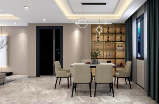 CBD家居·白金 | BJ190餐桌,勞倫白金巖板+黑色噴砂桌腳支撐,形色簡約純粹,頗有設(shè)計感的入墻柜,置物收納,呼應(yīng)別具生活感的舒適日常。