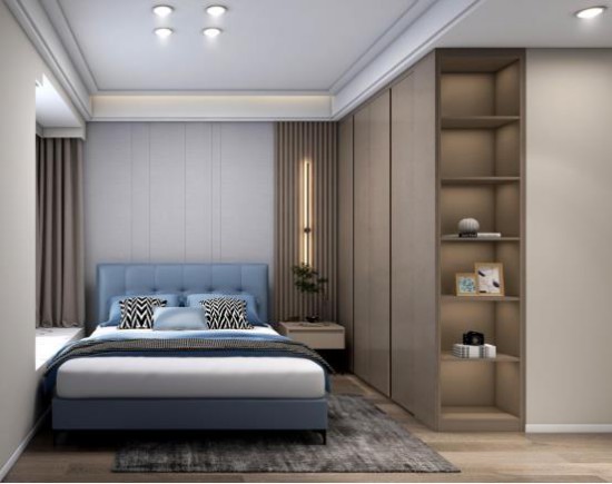 藍色為空間注入靜謐氣韻,CBD家居·白金 | BS009軟床放置一隅,飄窗設(shè)計恰到好處,小空間得到延展,更顯舒適休閑。格柵背景板與定制柜相呼應(yīng),色彩和諧,營造淡雅自然的睡眠氛圍。